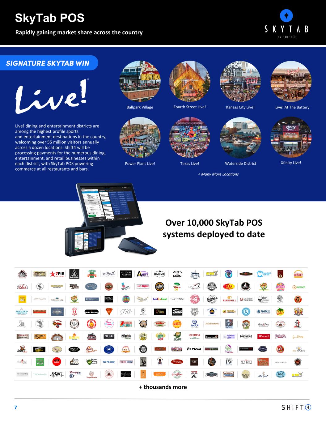 7 SkyTab POS Rapidly gaining market share across the country Live! dining and entertainment districts are among the highest profile sports and entertainment destinations in the country, welcoming over 55 million visitors annually across a dozen locations. Shift4 will be processing payments for the numerous dining, entertainment, and retail businesses within each district, with SkyTab POS powering commerce at all restaurants and bars. Over 10,000 SkyTab POS systems deployed to date Ballpark Village Waterside District Live! At The BatteryKansas City Live!Fourth Street Live! Xfinity Live!Power Plant Live! Texas Live! + Many More Locations + thousands more