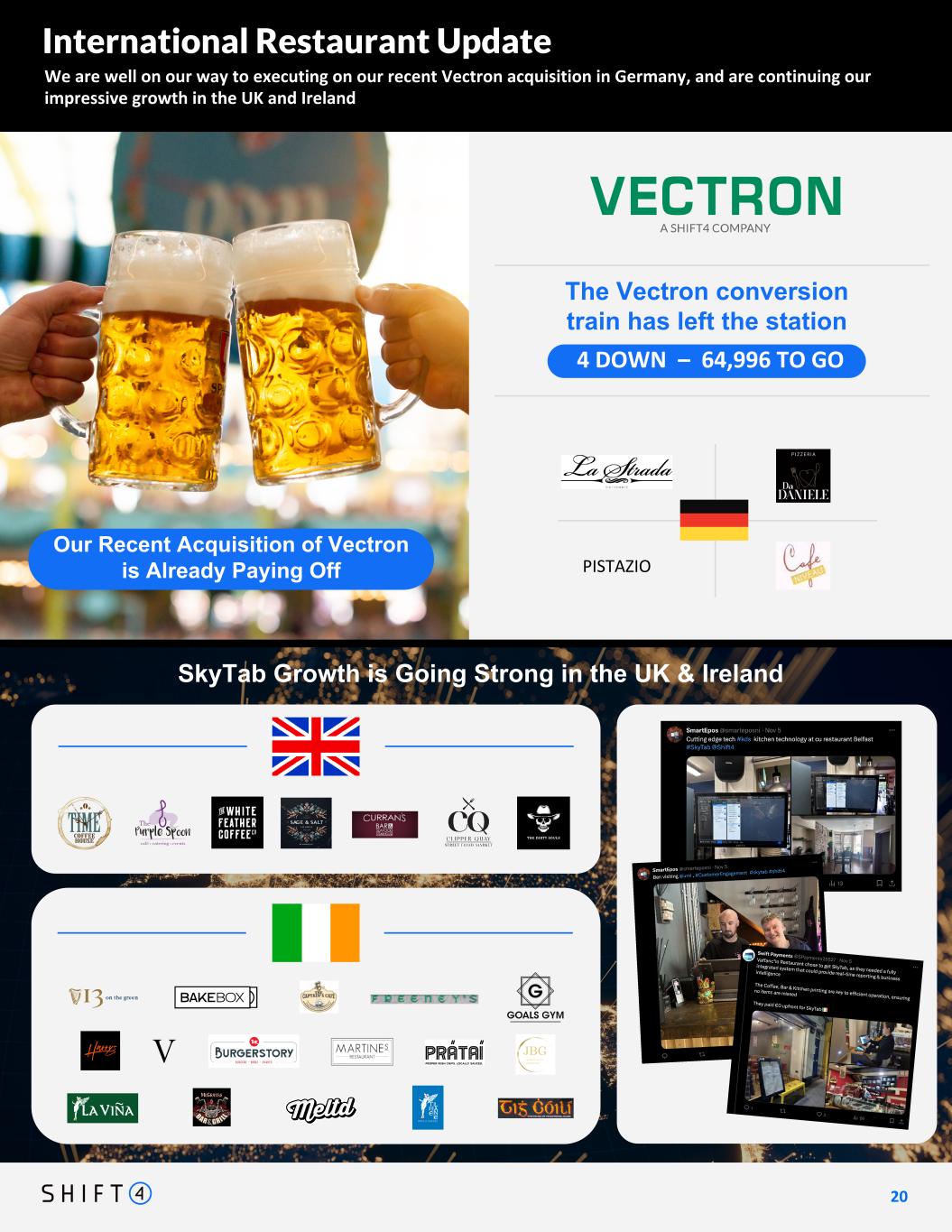 We are well on our way to executing on our recent Vectron acquisition in Germany, and are continuing our impressive growth in the UK and Ireland 2 0 20 International Restaurant Update The Vectron conversion train has left the station DRAFT IN PROGRESS - getting UK logos by Thursday (11/7) EODPISTAZIO Our Recent Acquisition of Vectron is Already Paying Off 4 DOWN – 64,996 TO GO SkyTab Growth is Going Strong in the UK & Ireland